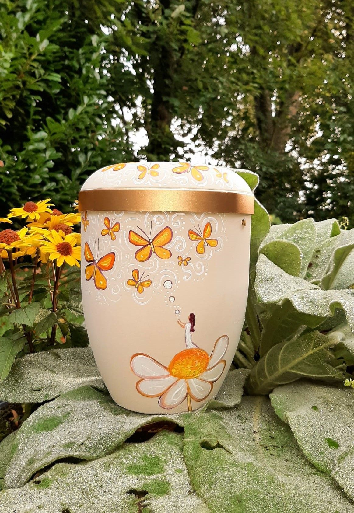 Jede Schmuckurne wird von mir in liebevoller Handarbeit bemalt und ist somit ein Unikat welches seine eigene Geschichte erzählt.
