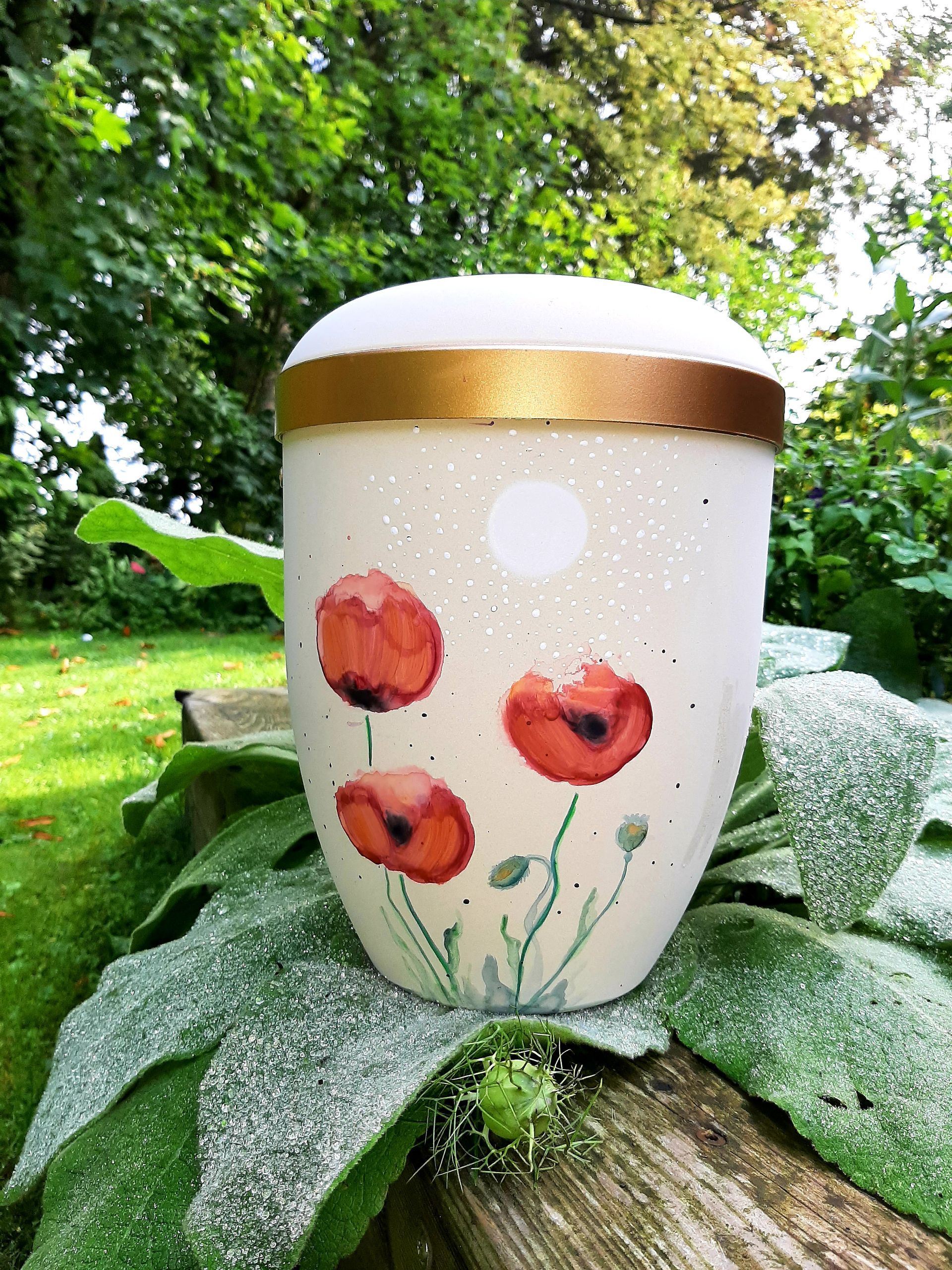 Jede Schmuckurne wird von mir in liebevoller Handarbeit bemalt und ist somit ein Unikat welches seine eigene Geschichte erzählt.